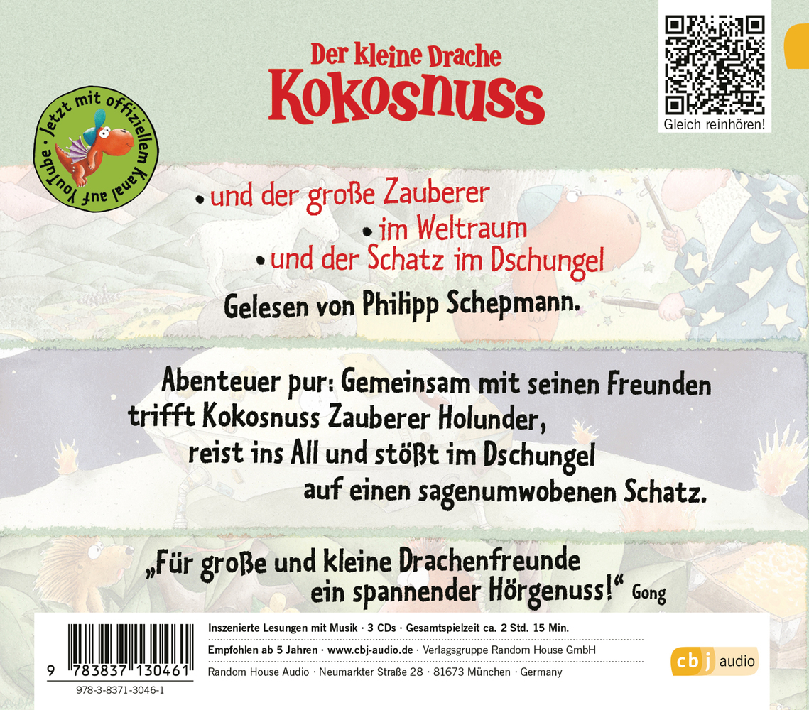 Der kleine Drache Kokosnuss in drei spannenden Abenteuern Philipp Schepmann KOKOSNUSS UND DER GROSSE ZAUBERER - KOKOSNUSS IM WELTRAUM - KOKOSNUSS UND DER SCHATZ IM DSCHUNGEL Autorentext Ingo Siegner wurde 1965 in Hannover geboren. Dort lebt und arbeitet er als...| 1 | Der kleine Drache Kokosnuss und der große Zauberer | 02:21 | |
