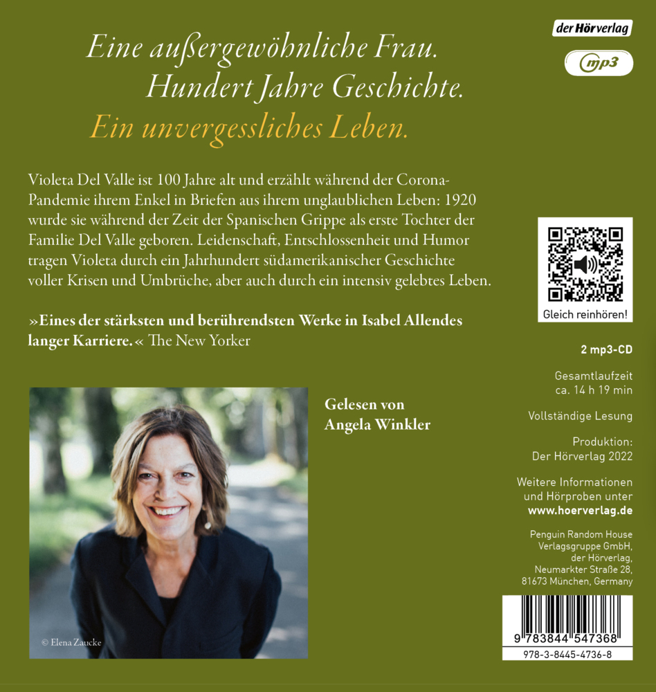 Eine außergewöhnliche Frau. Hundert Jahre Geschichte. Ein unvergessliches Leben. Violeta Del Valle ist 100 Jahre alt und erzählt während der Corona-Pandemie ihrem Enkel in Briefen aus ihrem unglaublichen Leben: 1920 wurde sie während der Zeit der Spanischen Gr...