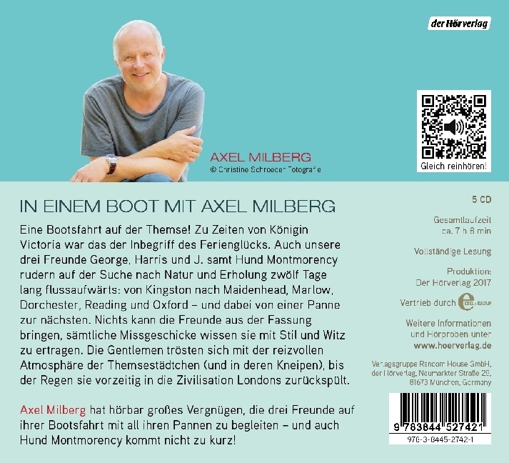In einem Boot mit Axel Milberg Eine Bootsfahrt auf der Themse! Zu Zeiten von Königin Victoria war das der Inbegriff des Ferienglücks. Auch unsere drei Freunde George, Harris und J. samt Hund Montmorency rudern auf der Suche nach Natur und Erholung zwölf Tage l...| 1 | Vorwort | 00:15 | |
