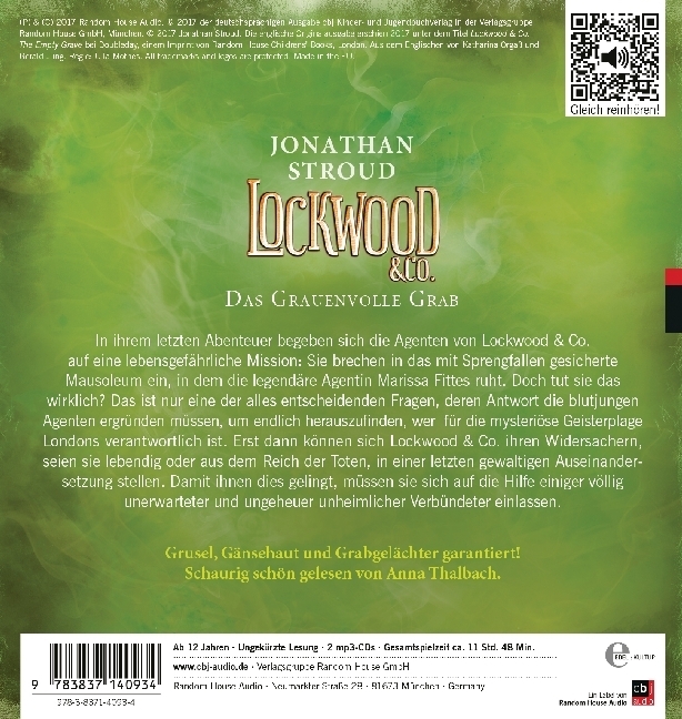Lockwood & Co. lösen ihren schwierigsten und letzten Fall! In ihrem letzten Abenteuer begeben sich die Agenten von Lockwood & Co. auf eine lebensgefährliche Mission: Sie brechen in das mit Sprengfallen gesicherte Mausoleum ein, in dem die legendäre Age...