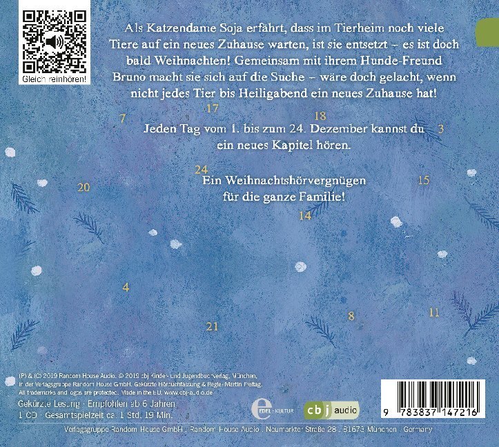 Soja und Bruno - die Weihnachtsengel auf vier Pfoten geben Tierheimbewohnern ein Zuhause Als Katzendame Soja erfährt, dass im Tierheim noch viele Tiere auf ein neues Zuhause warten, ist sie entsetzt - es ist doch bald Weihnachten! Sofort ist klar: Da muss sie ...