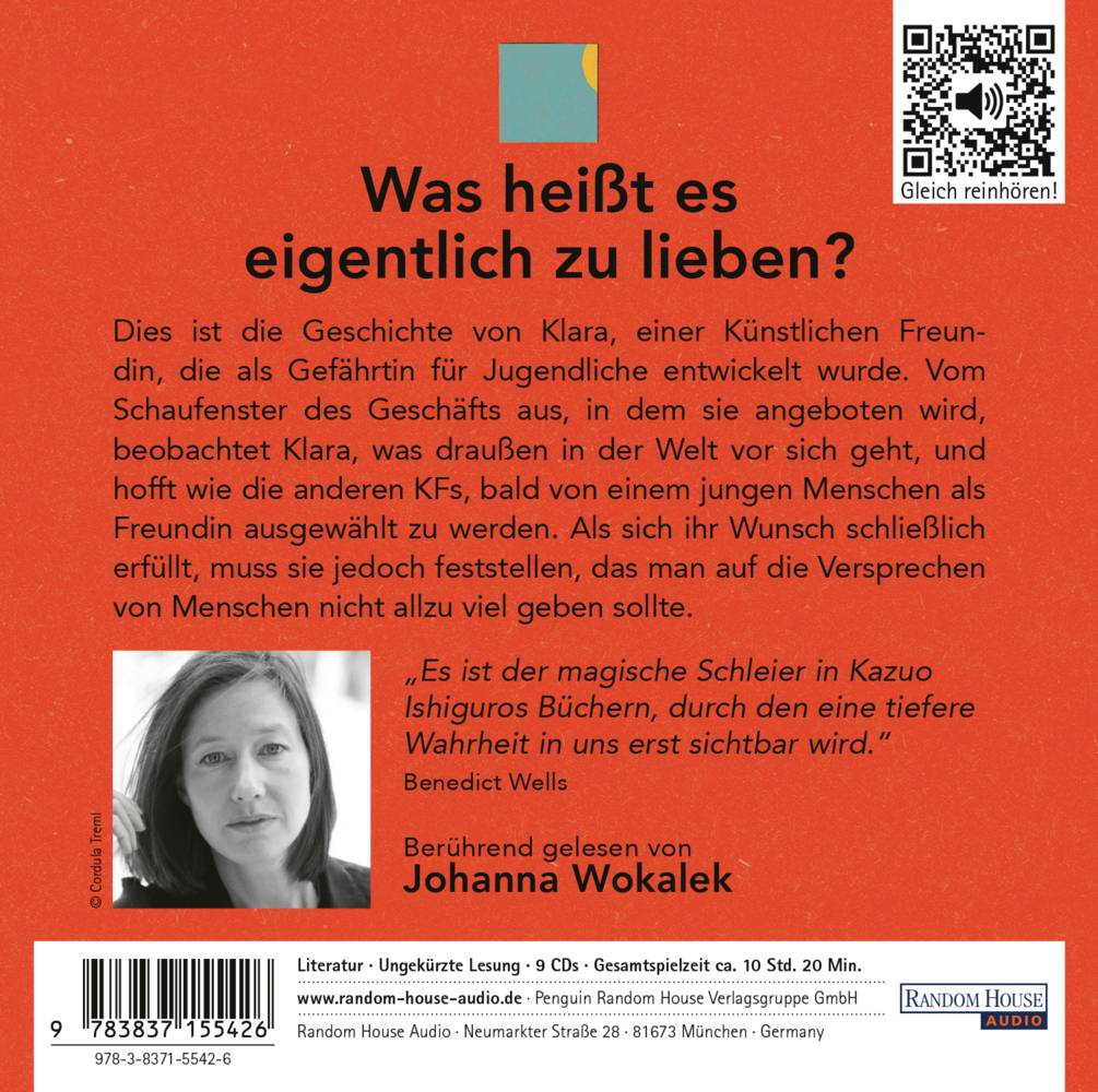 Ishiguro zeigt die Abgründe unserer Gesellschaft durch die Augen einer künstlichen Intelligenz Klara ist ein Artificial Friend, eine künstliche Intelligenz, die dafür entwickelt wurde, Jugendlichen eine Gefährtin zu sein auf dem Weg ins Erwachsenwerden. Von ih...