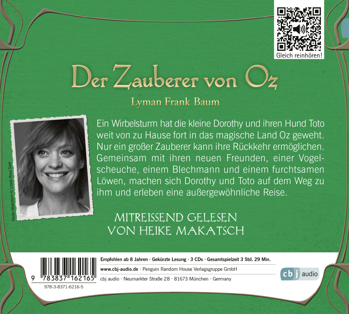 Zeitlos, spannend, poetisch - Hörvergnügen für die ganze Familie! Ein Wirbelsturm hat die kleine Dorothy und ihren Hund Toto weit von zu Hause fort in das magische Land Oz geweht. Sie macht sich daraufhin auf den Weg zum großen Zauberer von Oz, denn nur er kan...