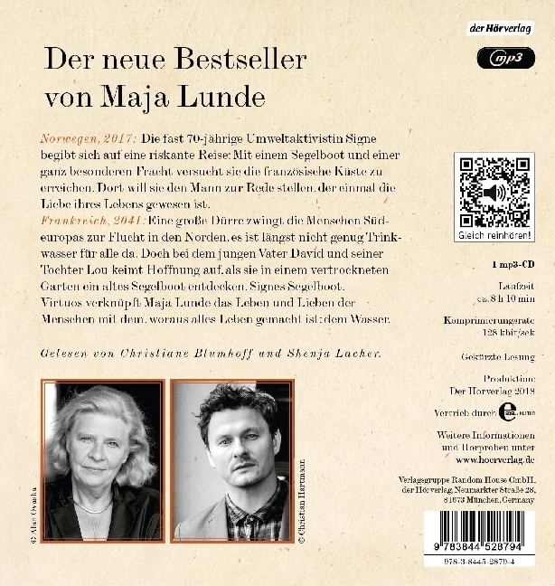 Nach dem Sensationserfolg "Die Geschichte der Bienen": der neue Bestseller von Maja Lunde Was geschieht, wenn unser Wasser knapp wird - wie weit sind wir bereit zu gehen? Virtuos verknüpft Maja Lunde Gegenwart und nahe Zukunft zu einer ergreifenden G...| 1 | Die Geschichte des Wassers | 08:10 |