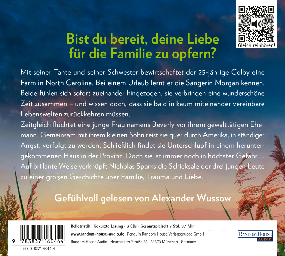 Eine herzzerreißende Entscheidung - zwischen deiner Liebe und deiner Familie Mit seiner Tante und seiner Schwester bewirtschaftet der 25-jährige Colby eine Farm in North Carolina. Bei einem Urlaub lernt er die Sängerin Morgan kennen. Beide fühlen sich sofort z...