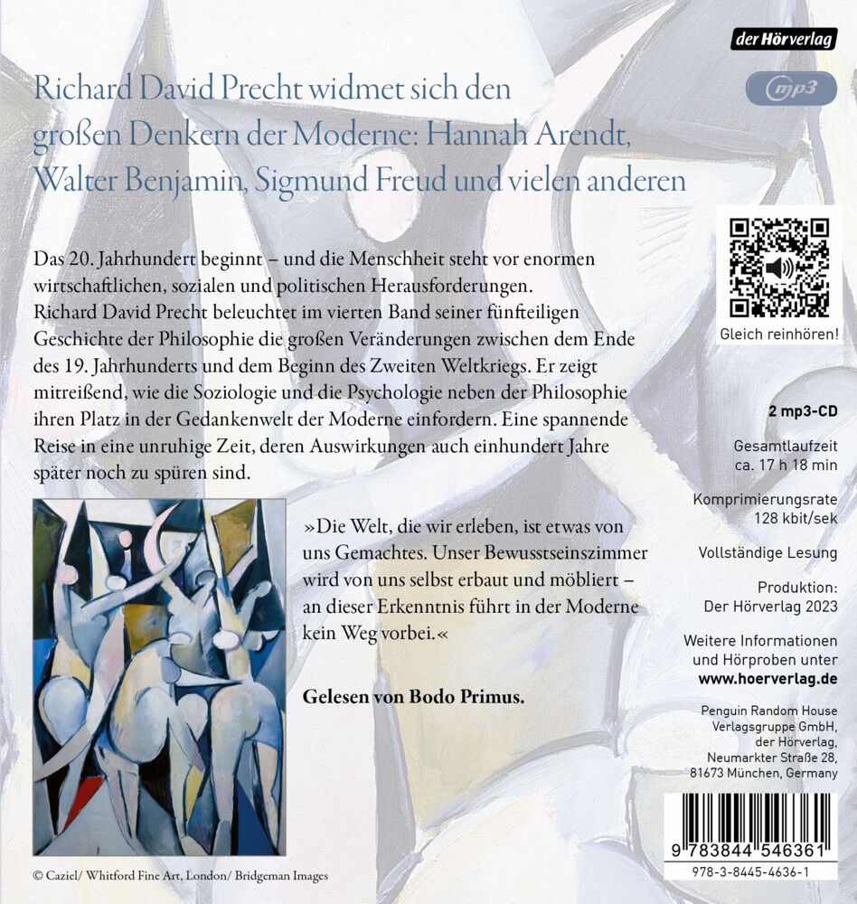 Richard David Precht widmet sich den großen Vordenkern der Moderne: Hannah Arendt, Walter Benjamin, Sigmund Freud, Martin Heidegger, Max Horkheimer, Ludwig Wittgenstein u. v. a. Die Moderne provoziert die Philosophie! Der Raum als feste Größe der Physik verlie...