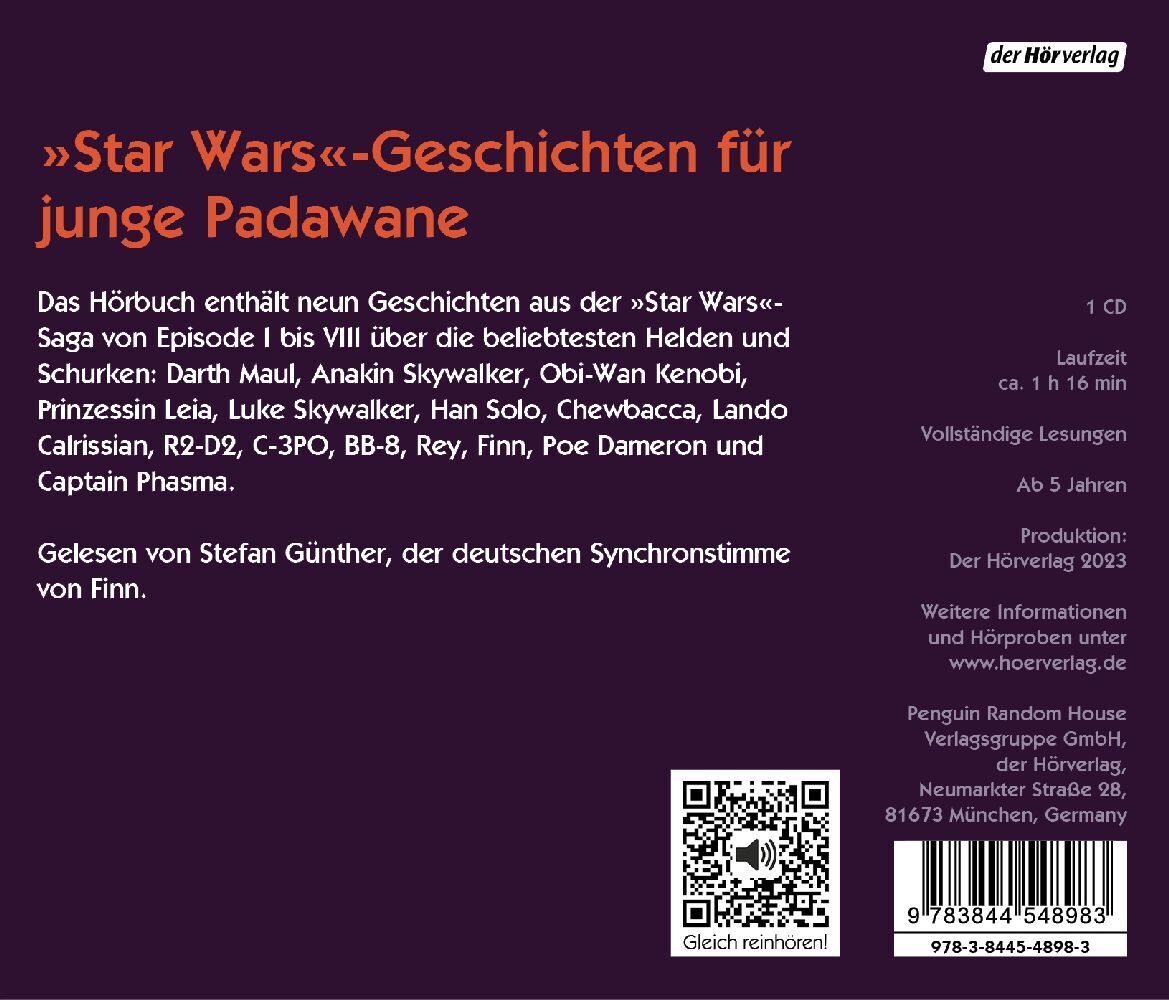 »Star Wars«-Geschichten für junge Padawane Das Hörbuch enthält neun Geschichten aus der »Star Wars«-Saga von Episode I bis VIII über die beliebtesten Helden und Schurken: Darth Maul, Anakin Skywalker, Obi-Wan Kenobi, Prinzessin Leia, Luke Skywalker, Han Solo, ...