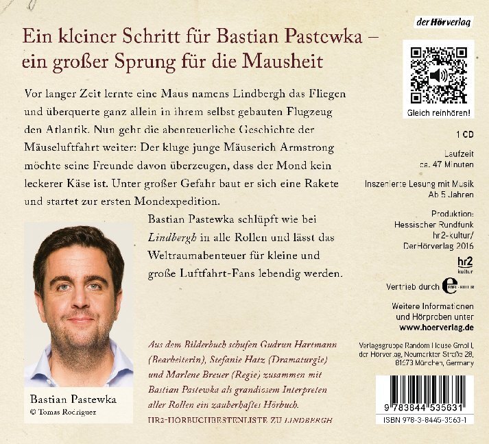 Ein kleiner Schritt für Bastian Pastewka - ein großer Schritt für die Mausheit Vor langer Zeit lernte eine Maus namens Lindbergh das Fliegen und überquerte den Atlantik. Nun geht die abenteuerliche Geschichte der Mäuseluftfahrt weiter. Denn es war kein Mensch,...