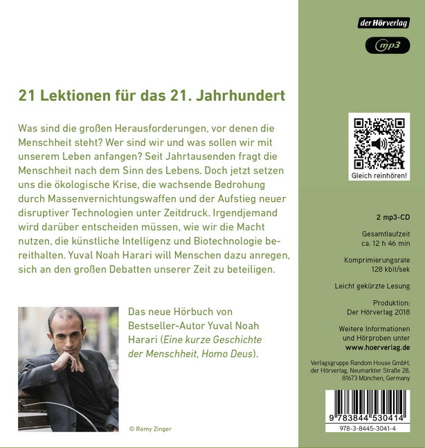 Was sollten wir unseren Kindern heute beibringen, damit sie für die Welt von morgen gerüstet sind? - Der Bestseller von Yuval Noah Harari Was sind die großen Herausforderungen, vor denen die Menschheit steht? Wer sind wir und was sollen wir mit unserem Leben a...| 1 | 21 Lektionen für das 21. Jahrhundert | 00:00 |