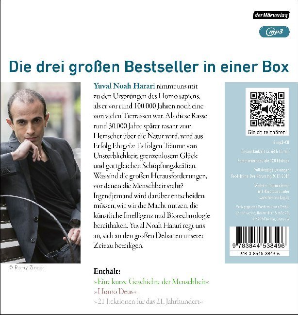 Die drei großen Bestseller von Yuval Harari zum Sonderpreis! Harari nimmt uns mit zu den Ursprüngen des Homo Sapiens, als er vor rund 100.000 Jahren noch eine von vielen Tierrassen war. Als diese Rasse rund 30.000 Jahre später rasant zum Herrscher über die Nat...