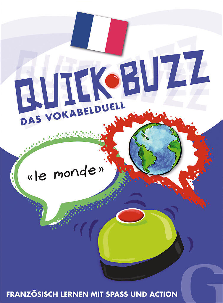 Schnell denken, schnell reagieren, geschickt kombinieren - darum geht es bei QUICK BUZZ - Das Vokabelduell - Französisch. Wer die Vokabel kennt und als erster auf die Tischglocke haut, gewinnt die Karte. Jeder Spieler versucht möglichst viele Karten zu sammeln...