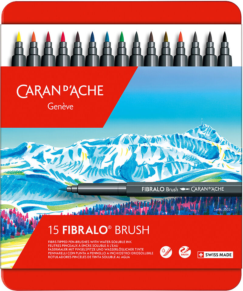 Fasermalstift FIBRALO BRUSH, 15 Stück Wasservermalbare Fasermaler mit Pinselspitze, mit welcher sich Striche von 0,5 mm bis 5 mm Stärke malen lassen Hochwertige Tinte auf Wasserbasis, die sich nicht durch das Papier durchdrückt und aus den meisten modernen St...