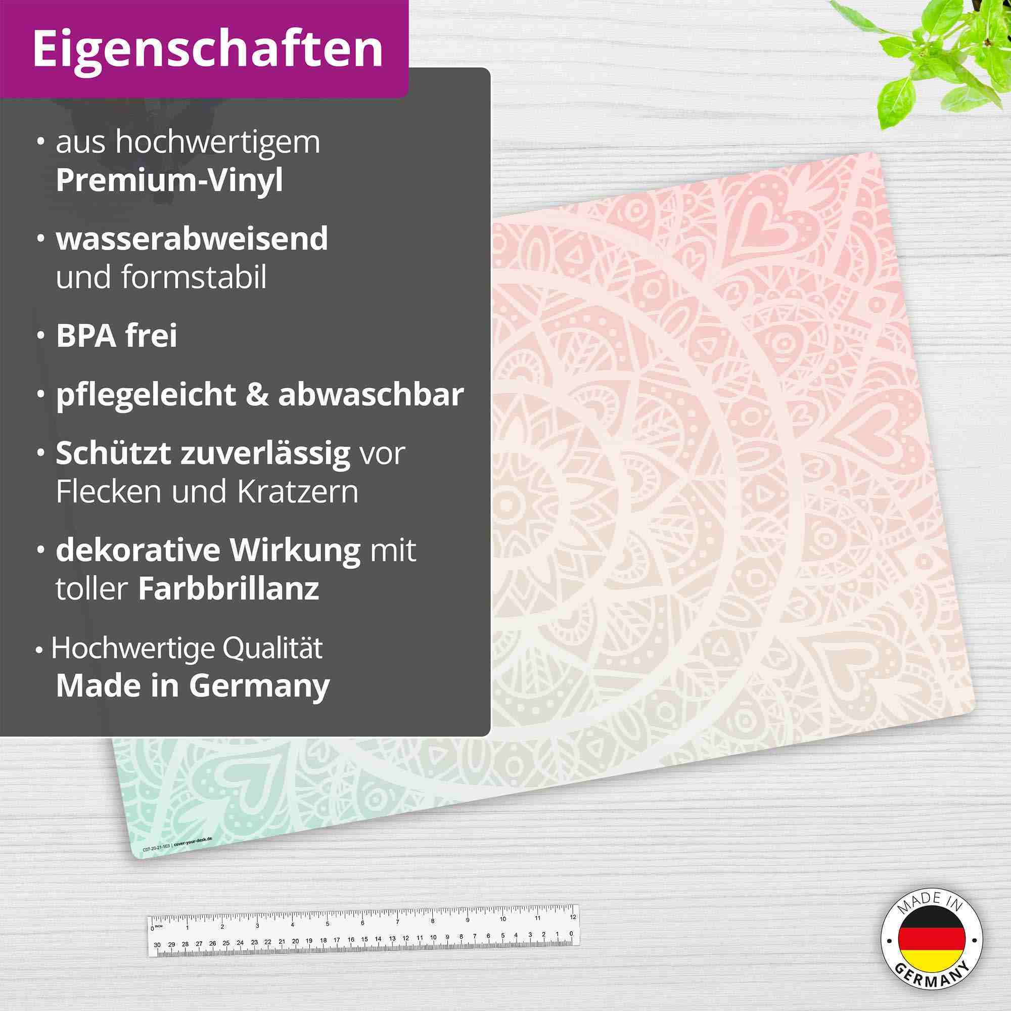 Diese Schreibtischunterlage weist eine tolle Haptik auf und besteht aus 1,6 mm dickem, erstklassigem Vinyl. Ein großer Vorteil dieses Materials ist, dass es abwaschbar, sehr pflegeleicht und hygienisch ist. Zudem ist die Tischunterlage robust und strapazierfäh...
