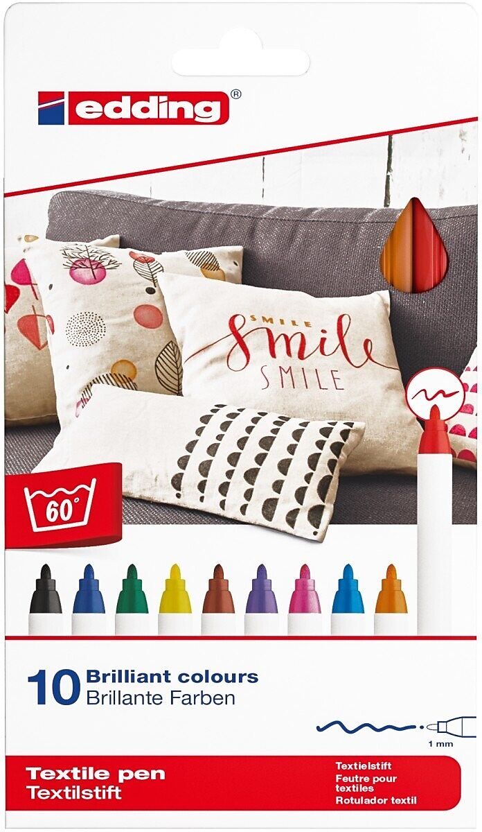 Textilmarker und -stifte für die farbenfrohe Gestaltung der meisten unbehandelten hellen Textilien (Baumwolle, Seide, Leinen etc.). Nach dem Fixieren mit dem Bügeleisen (ohne Dampf) waschfest bis 60 C auf den meisten Materialien. Hervorragende Lichtbeständigke...