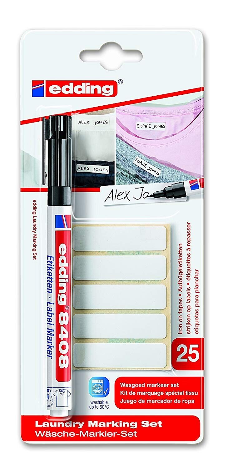 Kennst Du diese Situationen? Die Kinder kommen nach Hause und tragen den Pullover oder die Jacke von jemand anderem. Glücklicherweise ist dieses Set von edding perfekt dafür geeignet, Pannen wie diese zukünftig zu verhindern. Das Set enthält einen Etikettenmar...