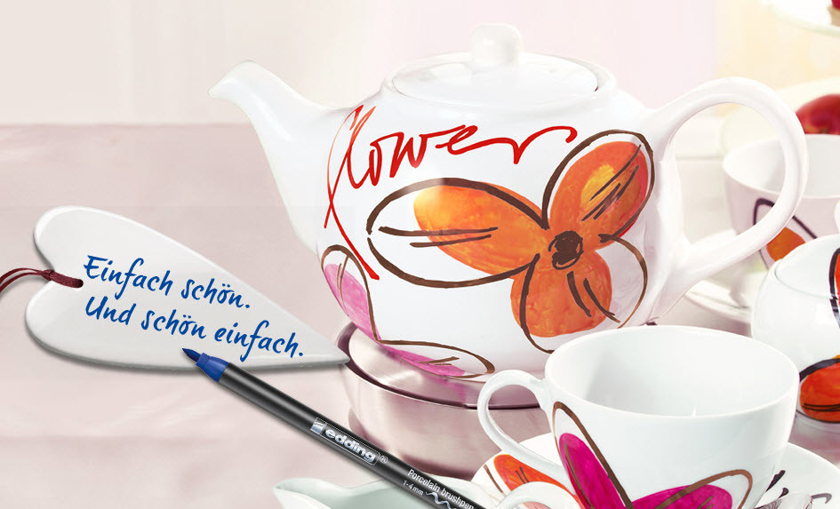 EDDING 4200 - Porzellan-Pinselstifte Der Porzellanmarker zeichnet sich durch die einfache Handhabung aus. Es ist kein Anpumpen nötig, bloss den Deckel weg und schon kann das Bemalen und Schreiben auf Porzellan, glasierter Keramik oder/und ofenfestem Glas begi...