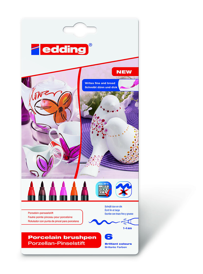 EDDING 4200 - Porzellan-Pinselstifte Der Porzellanmarker zeichnet sich durch die einfache Handhabung aus. Es ist kein Anpumpen nötig, bloss den Deckel weg und schon kann das Bemalen und Schreiben auf Porzellan, glasierter Keramik oder/und ofenfestem Glas begi...