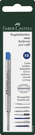 Für besonders leichtes und weiches Schreiben; Ersatzmine für Kugelschreiber; Standardgroßraummine mit Stahlspitze zum Durchschreiben geeignet; Dokumentenecht; Lichtbeständig; Schreibstärke: XB; Schreibfarbe: blau. Kugelschreibermine - Typbezeichnung der Mine: ...