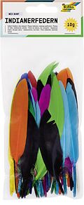 Indianerfedern, 10 Gramm bunt gemischt, 10-20 cm Größen sortiert, Gänsefedern, ideal geeignet als Dekoration oder für Bastelarbeiten wie Faschingsschmuck oder Verzierungen, verpackt in einem Polybeutel. Bunte Mischung von Indianerfedern, 10g, verschiedene Farb...