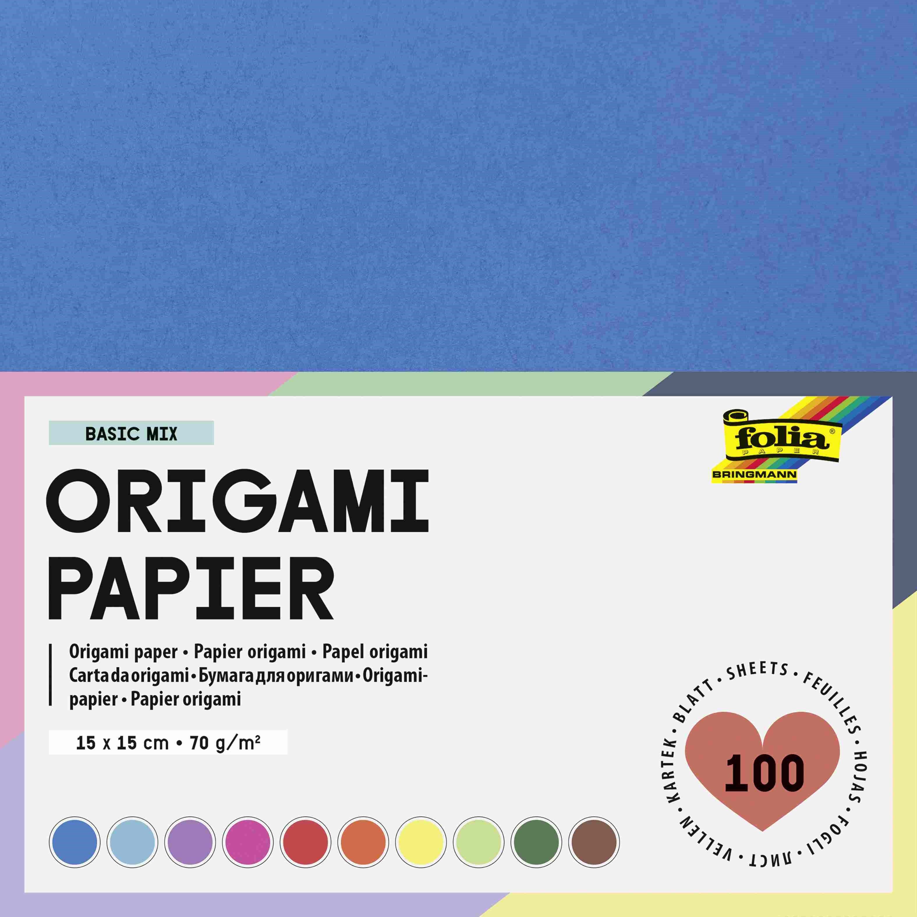 Faltblätter 70g/qm, 15x15cm, 100 Blatt in 10 verschiedenen Farben, durchgefärbt, durch das Falten entstehen aus den quadratischen Blättern 2- oder 3-dimensionale Origamitiere, Papiergirlanden, Fensterbilder, Sterne und andere Figuren. Faltarbeiten fördern die ...