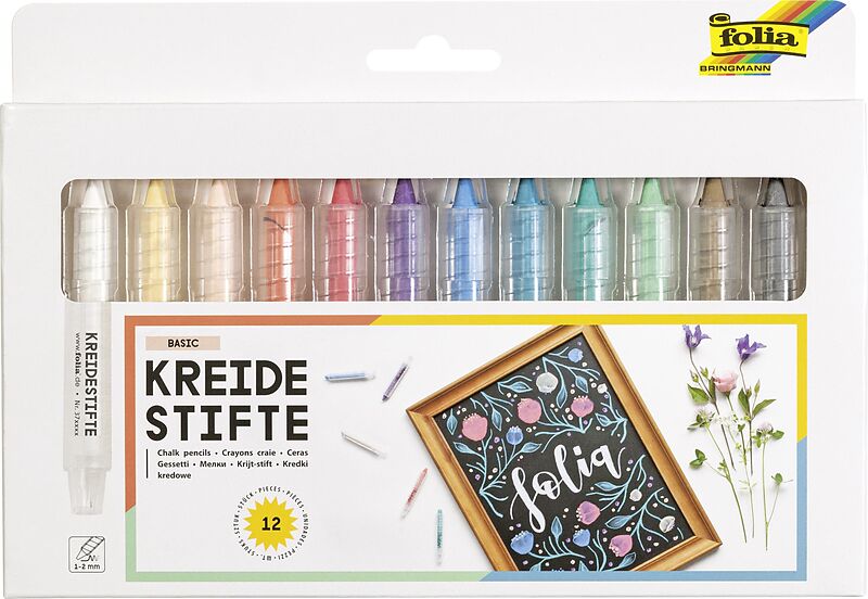 Kreidestifte 12er Set Die Kreidestifte sind von der Beschaffenheit her ähnlich wie Wachsmalkreiden, bestehen aber aus Kreide, der Stift liegt gut in der Hand und die Spitze kann spielend leicht nachgedreht und mit einem Spitzer angespitzt werden, die Stifte ei...
