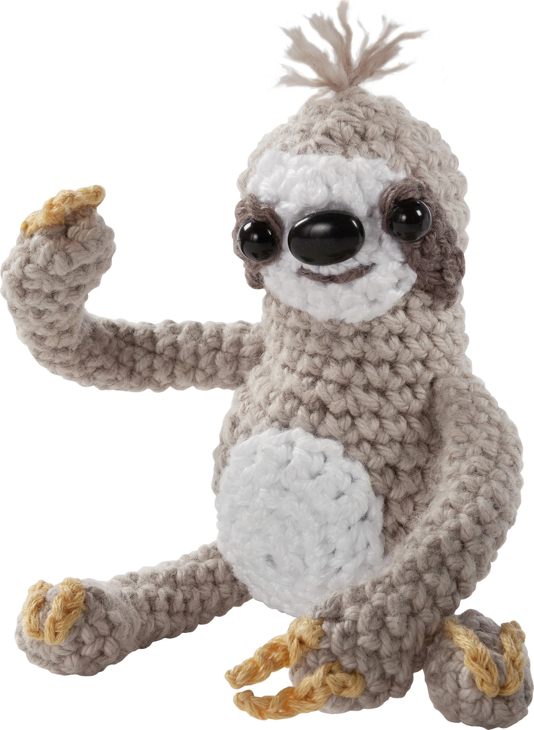 Mini-Häkelset "Faultier", komplettes Set zur Herstellung eines selbstgehäkelten Löwes ca. 9 - 11 cm groß, Inhalt: 1 Häkelnadel 2,5 mm, 15 g Wolle beige, 5 g Wolle weiß, 2 Sicherheitsaugen 6 mm, 1 Sicherheitsauge 10 mm, 10 g Füllwatte, 2 Baumwollgarn ocker & du...