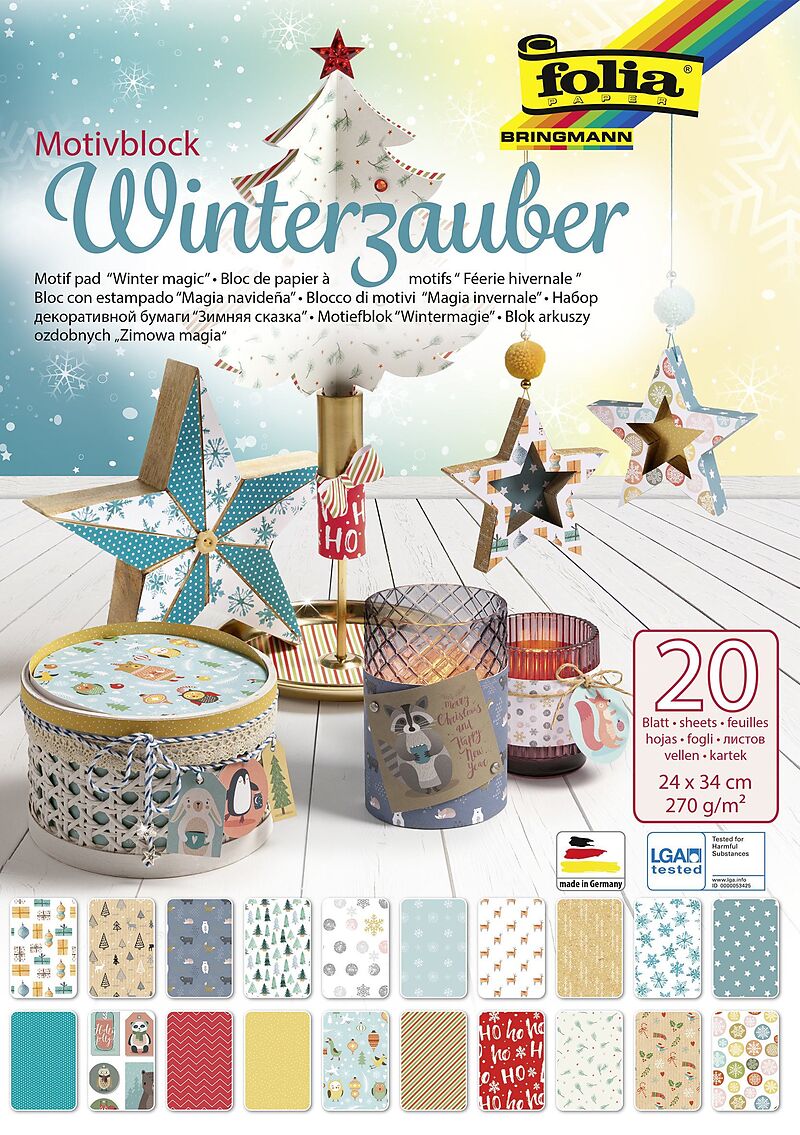 Motivblock Winterzauber, 270 g/qm, 24x34cm, 20 Blatt sortiert, abgestimmte Motivkartons aus topaktuellen Themen, perfekt geeignet zum Basteln von kreativen Karten, Dekorationen u.v.m., geeignet für alle Altersklassen, LGA tested, Made in Germany. Block mit Ran...