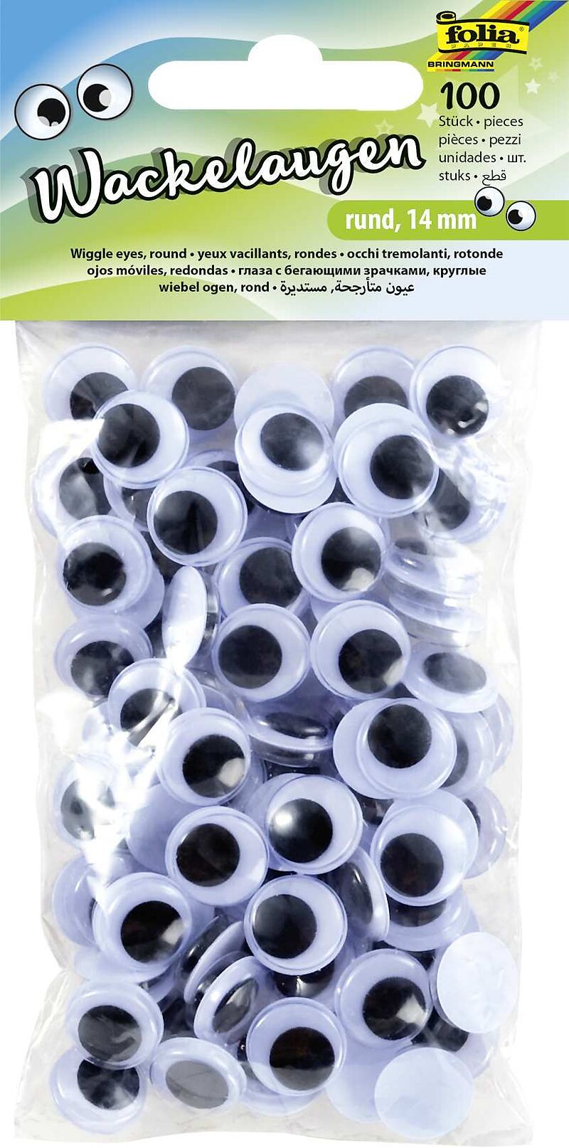 Wackelaugen, rund, 100 Stück, Farbe weiß, rund, Durchmesser 14mm, verpackt im Polybeutel mit 4-farbig bedrucktem Reiter Mit diesen Wackelaugen verleihen Sie Ihren gebastelten Figuren ein Eigenleben. Auch als Verzierung für Karten, Dekorationen, Kindergartentas...