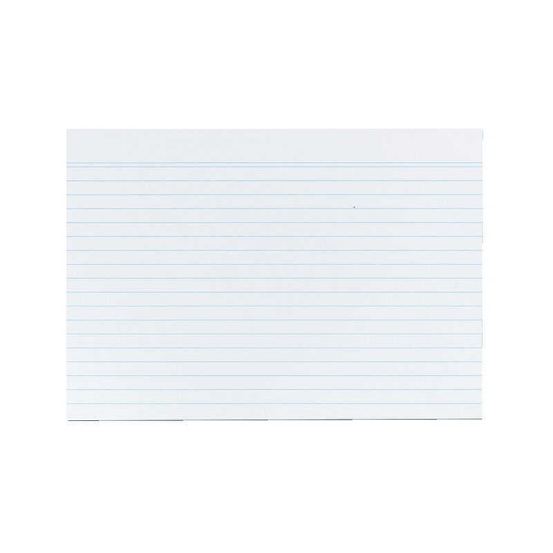 Karteikarte A5 100 Stück liniert weiß. Werkstoff: Papier, holzfrei, HF, säurefrei (pH-Wert 7 oder höher). Flächenmasse des Papiers: 170 g/qm. Farbe der Lineatur: blau. Doppelte Kopflinie. Verwendung für Druck- oder Schreibgerät: tintenfest, für alle Füllhalter...