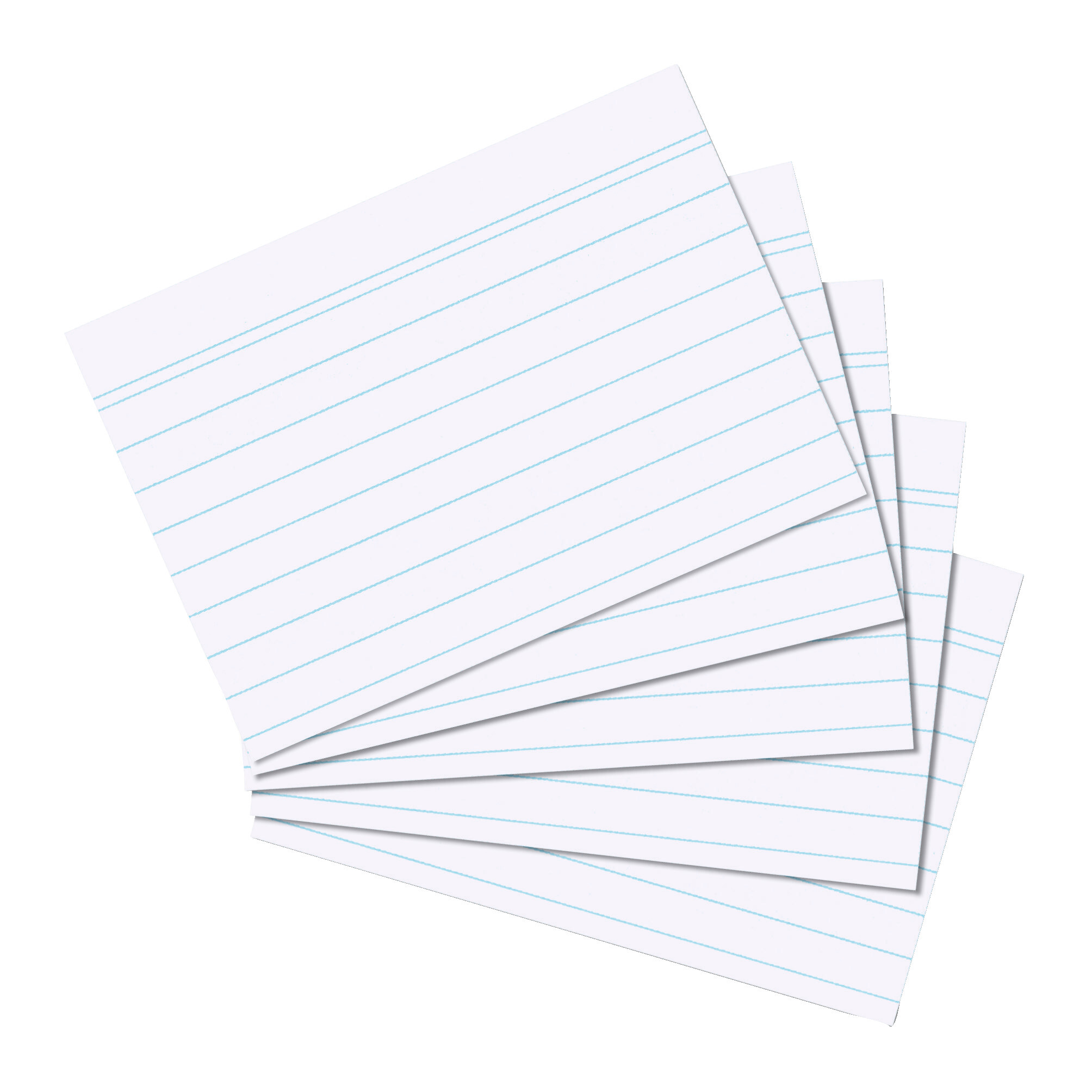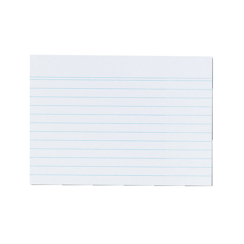 Karteikarte A6 100 Stück liniert weiß. Werkstoff: Papier, holzfrei, HF, säurefrei (pH-Wert 7 oder höher). Flächenmasse des Papiers: 170 g/qm. Farbe der Lineatur: blau. Doppelte Kopflinie. Verwendung für Druck- oder Schreibgerät: tintenfest, für alle Füllhalter...