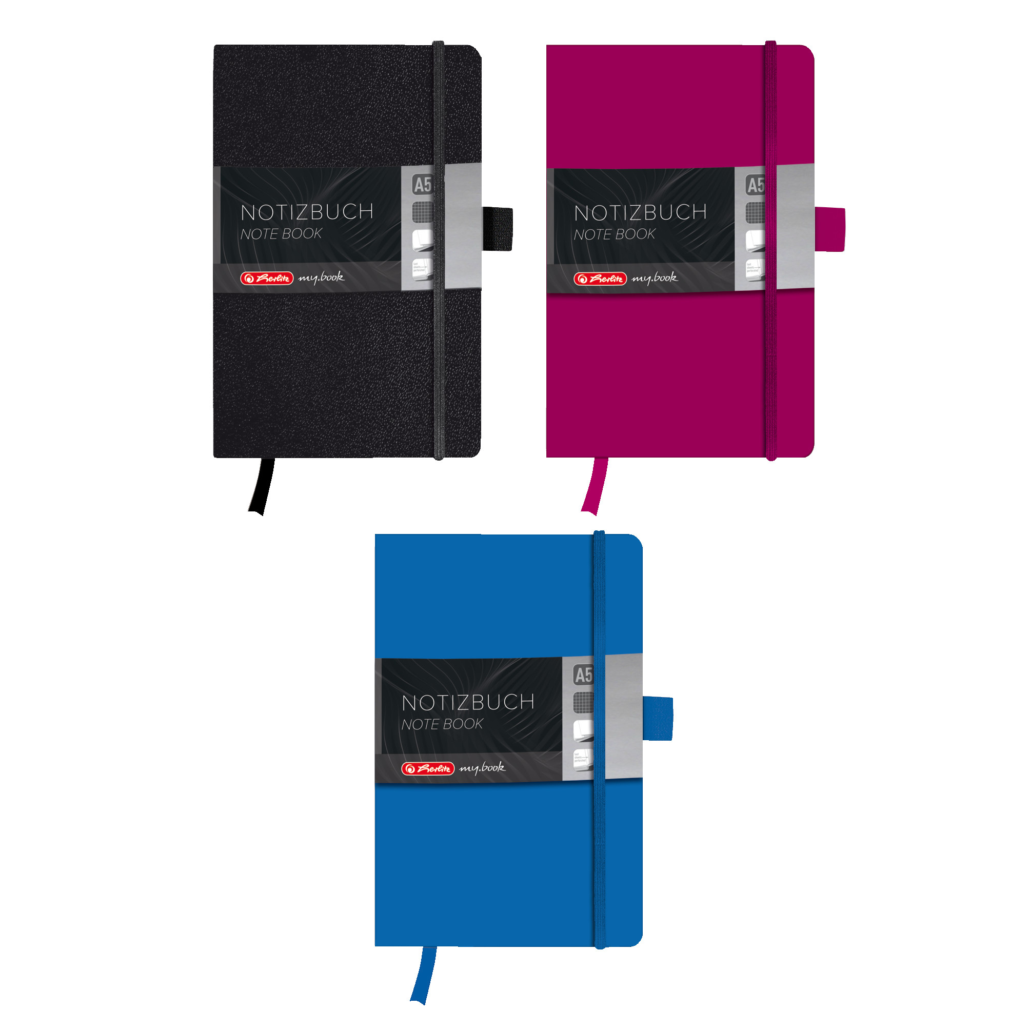 Herlitz Notizbuch Classic A5 96 Blatt kariert schwarz mit Leseband und Falttasche my.book