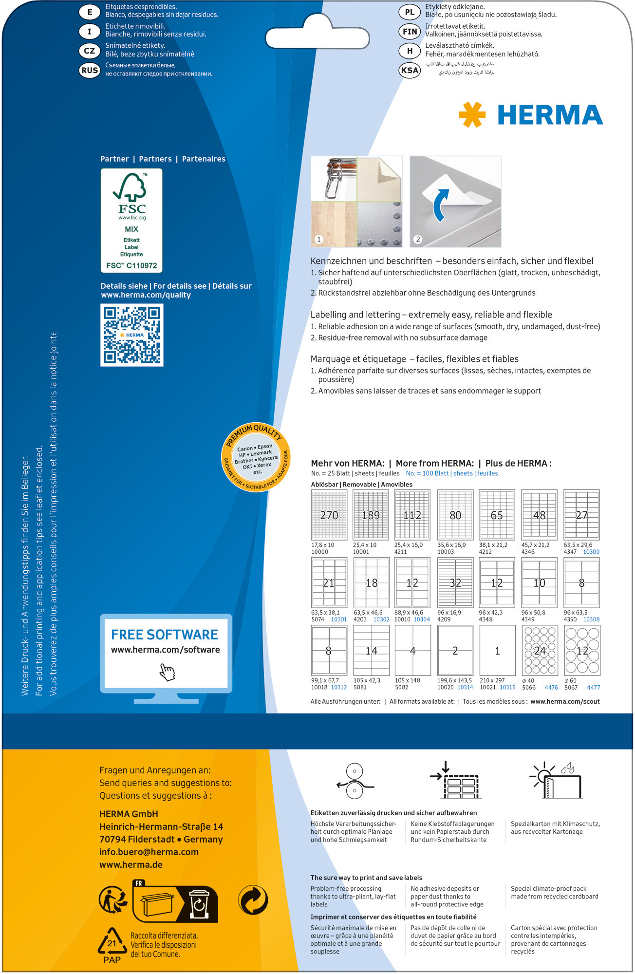 Etiketten Selbstklebende Etiketten auf A4-Blättern geliefert. Dank Movables-Technology haften sie auf allen glatten, trockenen, unbeschädigten und staubfreien Flächen. Sie sind rückstandsfrei wieder abziehbar ohne den Untergrund zu beschädigen, problemlos rep...