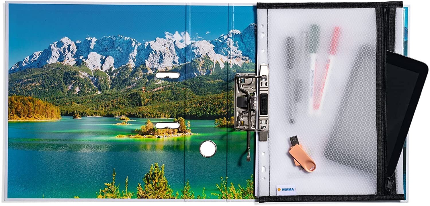 Die HERMA Ordnertasche in schwarz im Format DIN A4 mit Reißverschluß und Eurolochung lässt sich in Ordner oder Ringbücher einheften und bietet ausreichend Platz für Alles, was abgeheftet werden soll, aber nicht gelocht werden kann. So sind CDs, DVDs, Stifte, M...