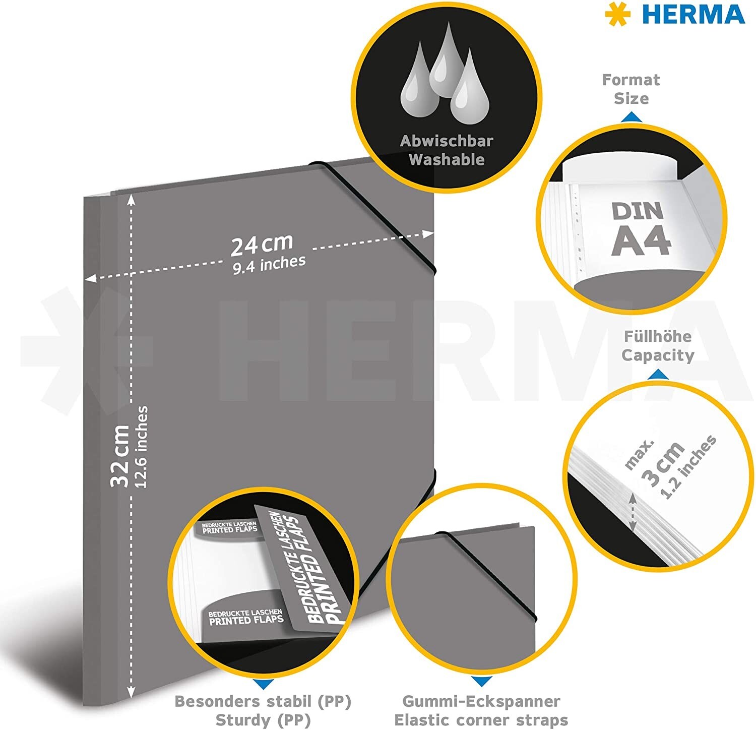 Sammelmappe mit Gummizug und 3 bedruckten Einschlaglaschen. Aus stabilem Polypropylen im Format A4. Ideal zur Aufbewahrung von losem Schriftgut. - Sammelmappe für DIN A4 210 x 297 mm in Hochglanz-Optik - Aus stabilem Polypropylen, abwaschbar und strapazierfähi...