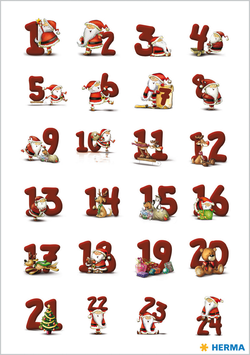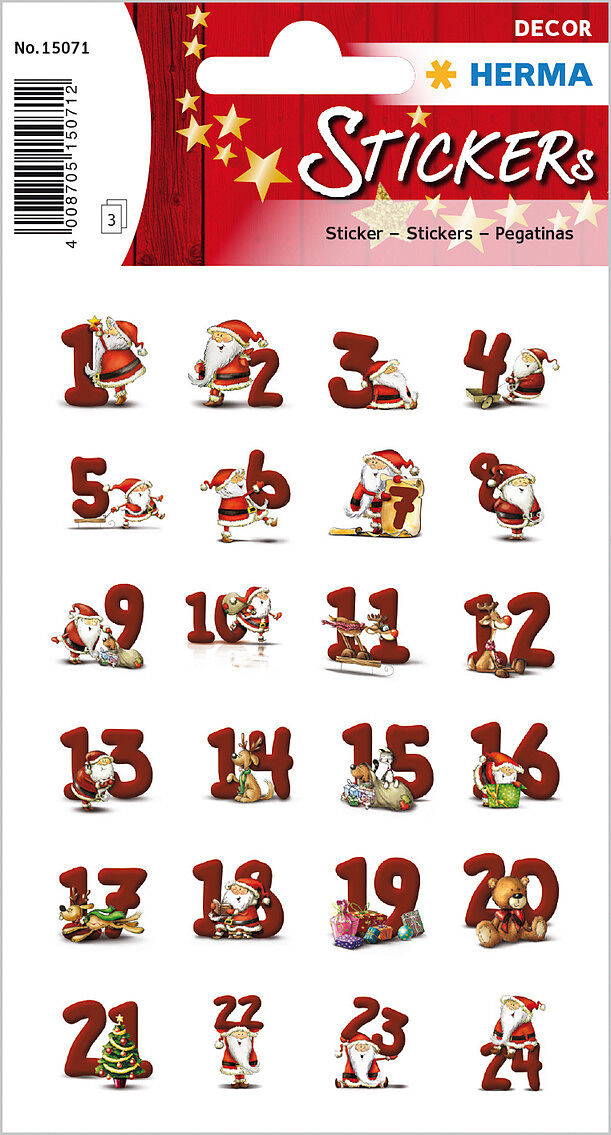 HERMA Sticker Adventskalender 15071 rot 72 Stück/3 Blatt rot 72 Stück/3 Blatt