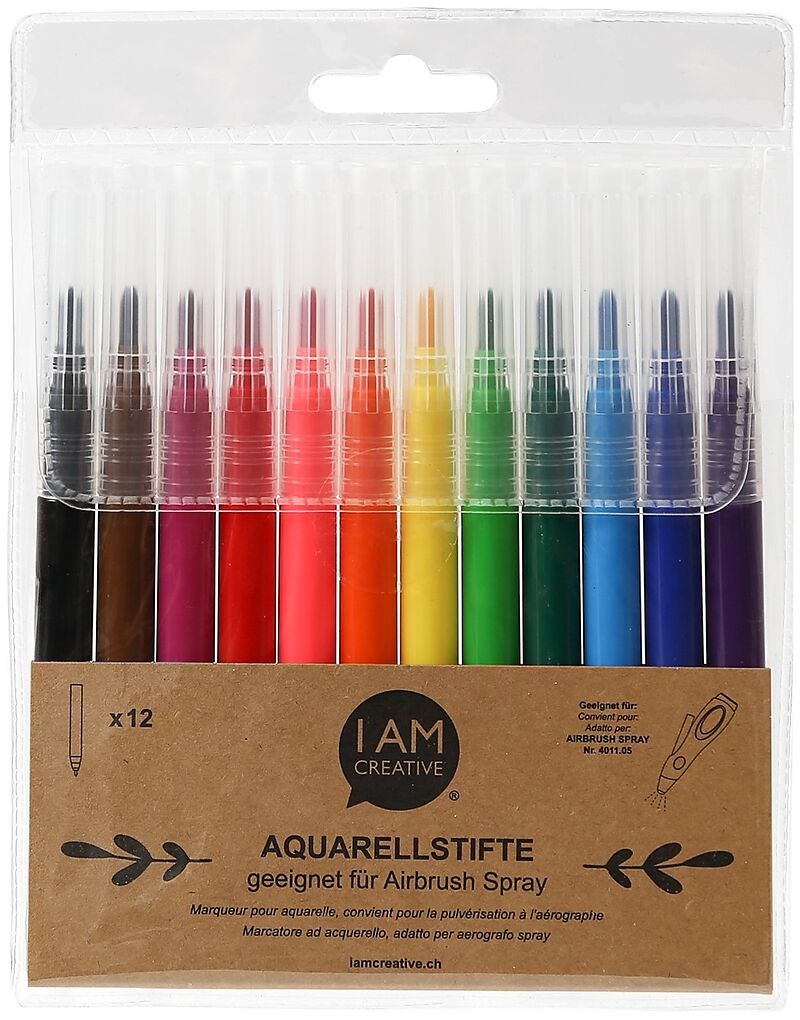 Die 12 bunten Aquarellstifte sind perfekt für den I AM CREATIVE Air Brush geeignet. Stift in den Air Brush hineindrehen und los gehts.