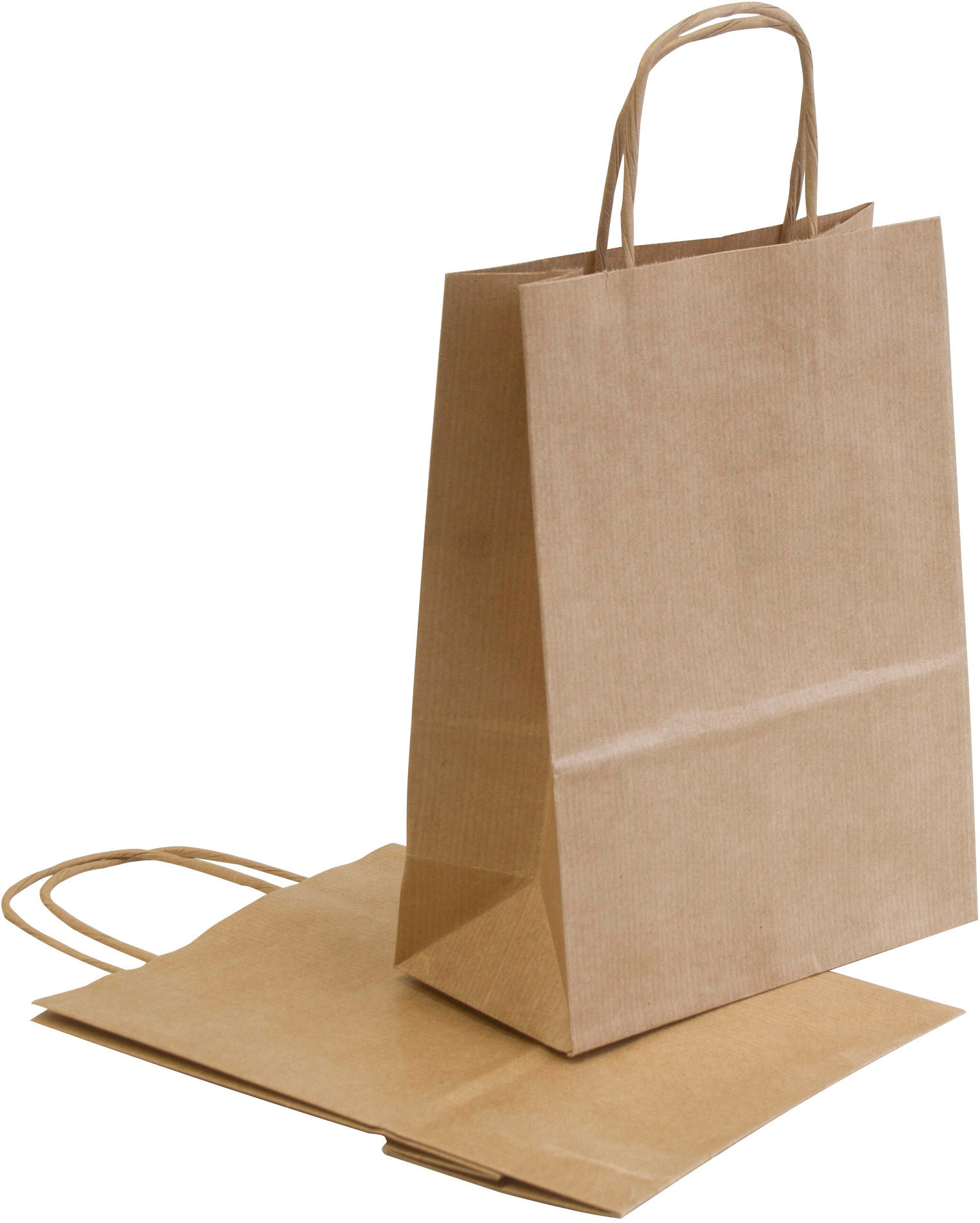 Kraftpapier-Tragetasche mit passenden gedrehten Papierkordeln als Henkel, 110gm2 - besonders robust und strapazierfähig - wiederverwertbar - 100% recyclebar