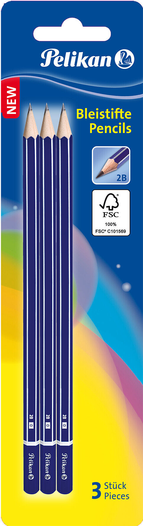 Pelikan Bleistift 2B, Sechskant, Blau, 3er Set