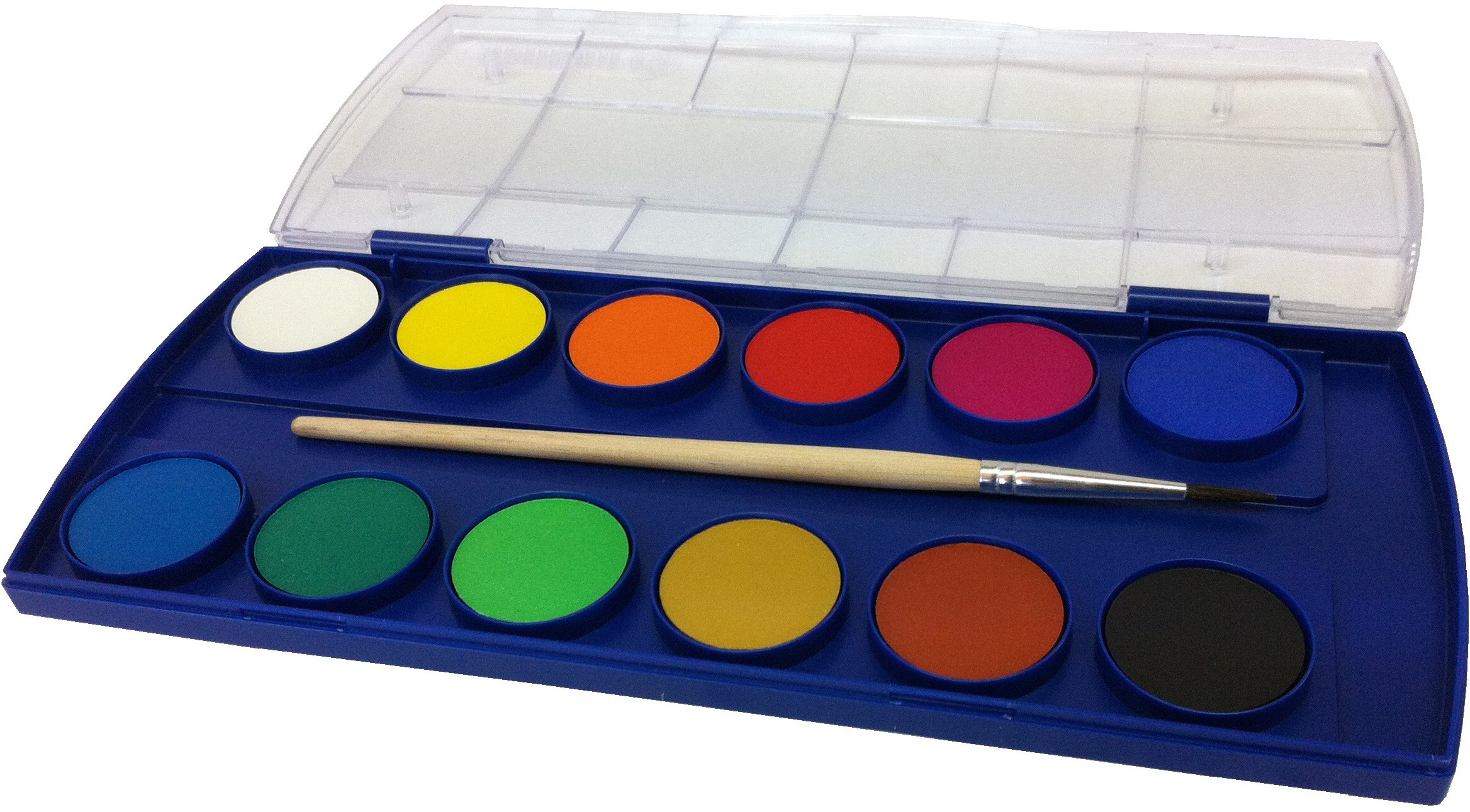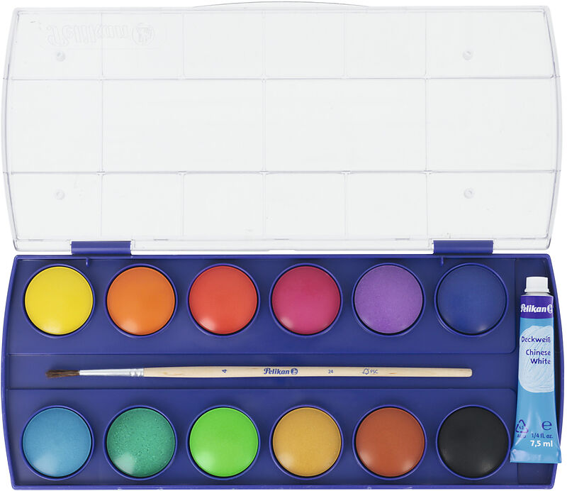 F355 - Deckfarben-Kasten Der trendige Deckfarbkasten bietet 12 Qualitäts-Farben und eine Tube Deckweiss, ein aussergewöhnliches Design und eine umfangreiche Ausstattung. Ideal für Kunstprojekte in der Schule. Inklusive Pinsel Kräftige Töne Gut deckend...