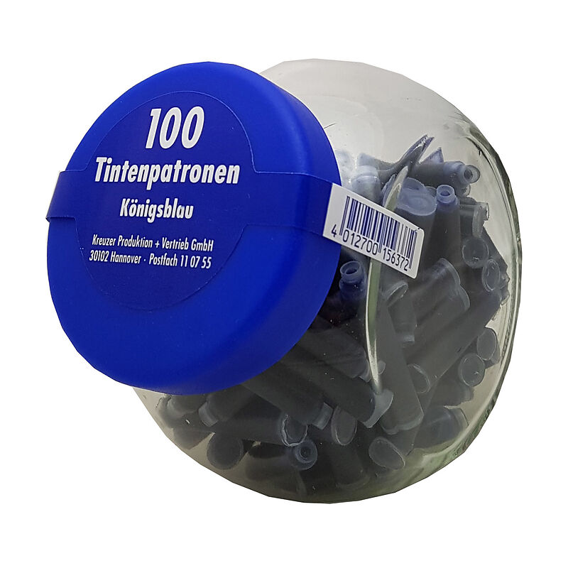 Das Glas enthält 100 Tintenpatronen in Königsblau.