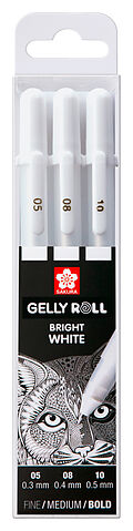 Faserschreiber Gelly Roll White, 3 Stück Der Sakura Gelly Roll Pen ist dank der einzigartigen Pigmenttinten-Formel auf Wasserbasis der weltbeste Gelstift. Die einzigartige Geltinten-Technologie sorgt für leichtes Schreiben ohne Druckausübung, darüber hinaus f...
