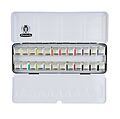 Stabiler Metallkasten, Vollsortiment mit 24 halben Näpfchen feiner Künstler-Aquarellfarbe (L x B x H 22,4 x 7,2 x 2,3 cm) Ein idealer Einstiegskasten in die Aquarellmalerei, die vielen brillanten Farbtöne eignen sich perfekt zum Mischen weiterer Farben. Enthal...
