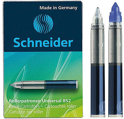 Tintenpatronen Universal 852 M, 5 Stück Tintenrollerpatronen mit Kugelspitze in Strichstärke M für Schneider Breeze, Base Senso, Base Ball, One Change und für Modelle anderer Hersteller. Schreibfarbe "königsblau" löschbar. Schreibt leicht, ist schne...