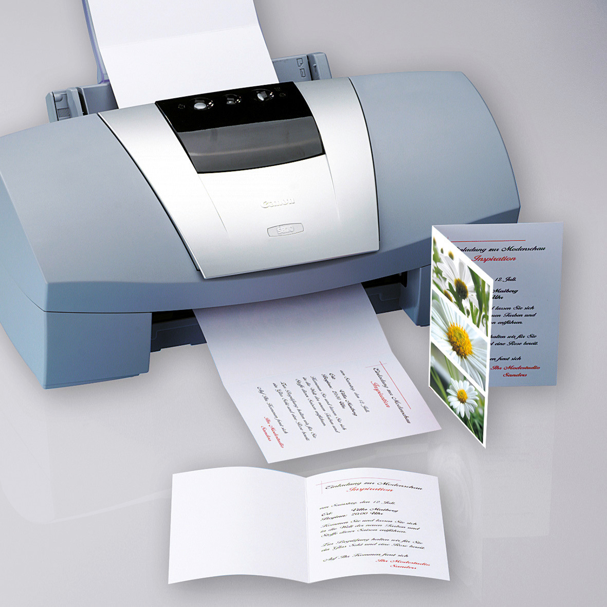 Karten ohne Vordruck sind individuell gestaltbar für Einladungen, Danksagungen, Glückwünsche usw. Die Karten sind zum Bedrucken mit InkJet- und Laser-Drucker sowie zum Kopieren geeignet.