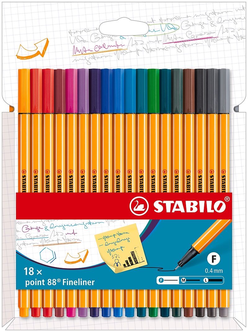 STABILO point 88. Der universelle Fineliner für Schüler, Studenten und Profis. Europas Fineliner Nr. 1. Einzigartige Sechskantoptik mit Streifendesign. Metallgefasste Spitze für lange Lebensdauer. Strichstärke 0,4 mm. Für feines Schreiben, Zeichnen und Skizzie...