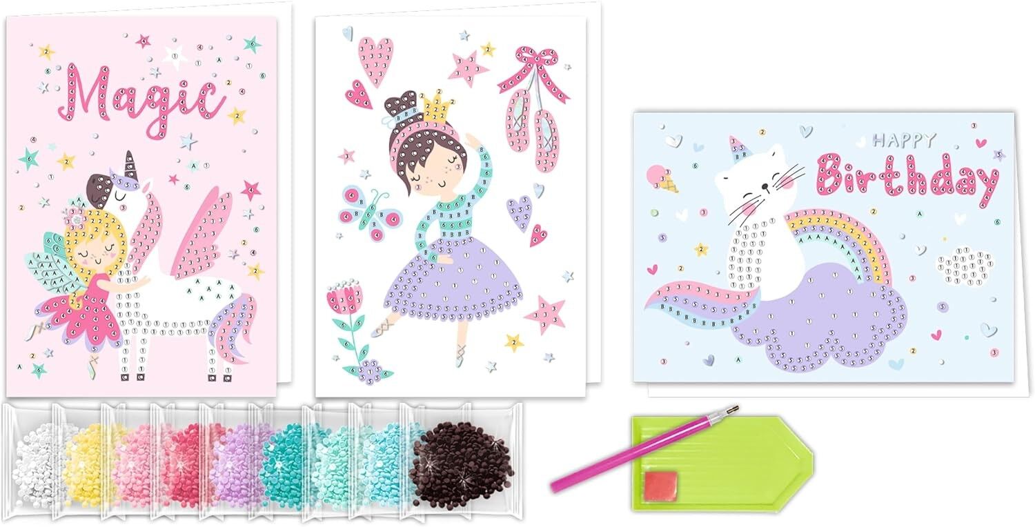 URSUS Diamond Painting Greeting Cards Magic, Grußkarten Bastelset für Kinder, 3er Set