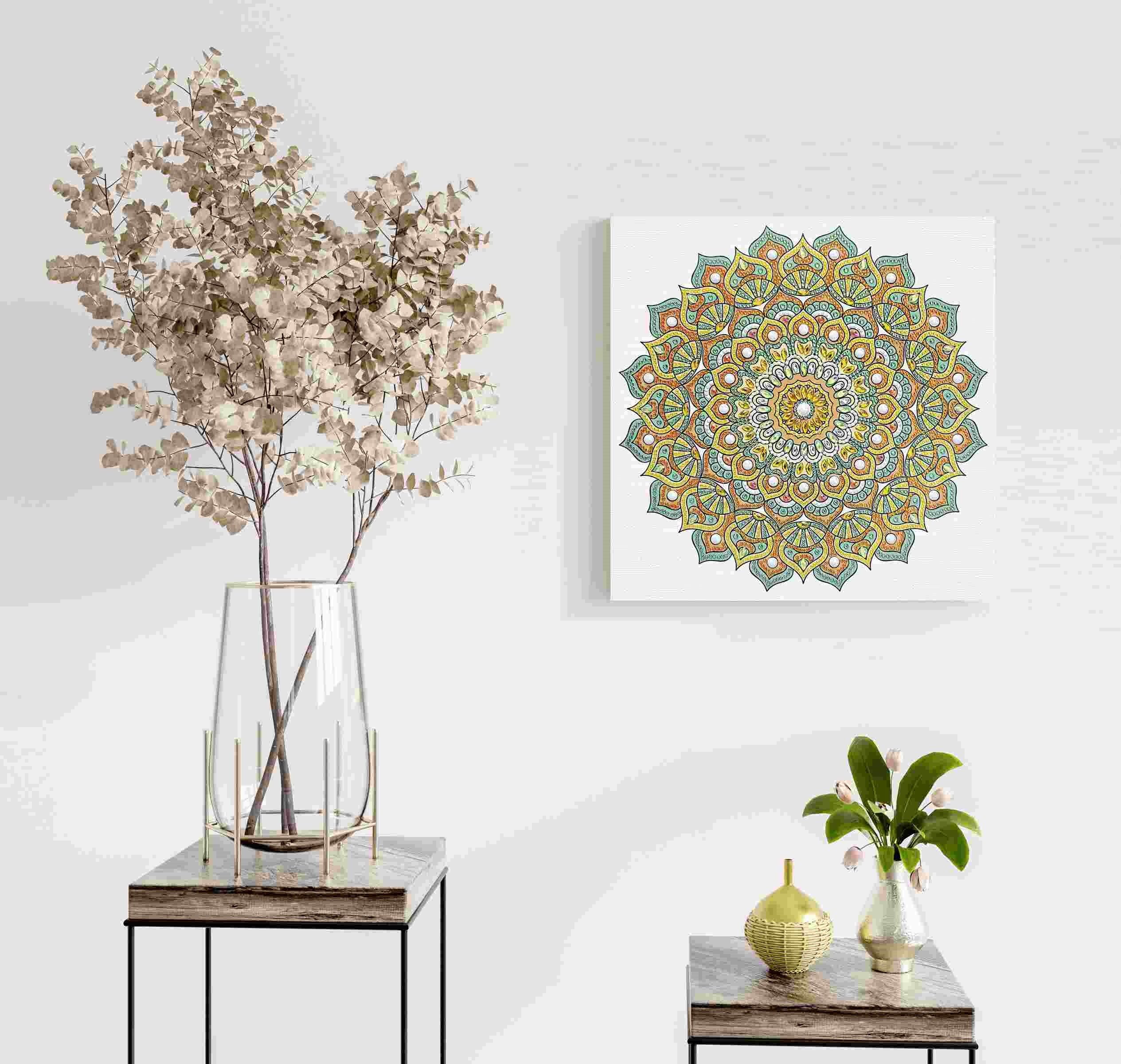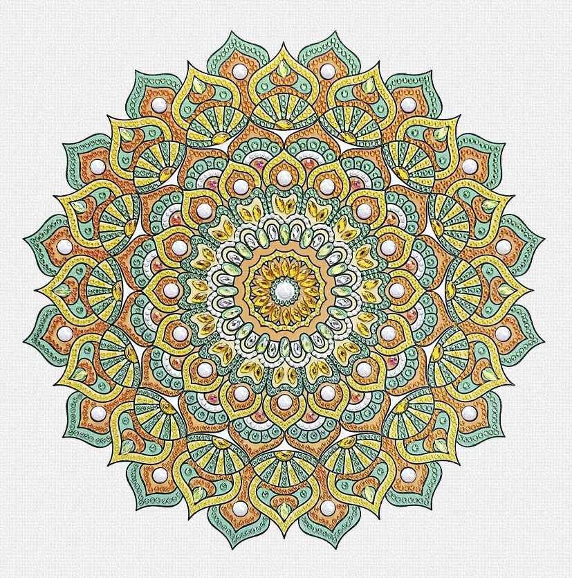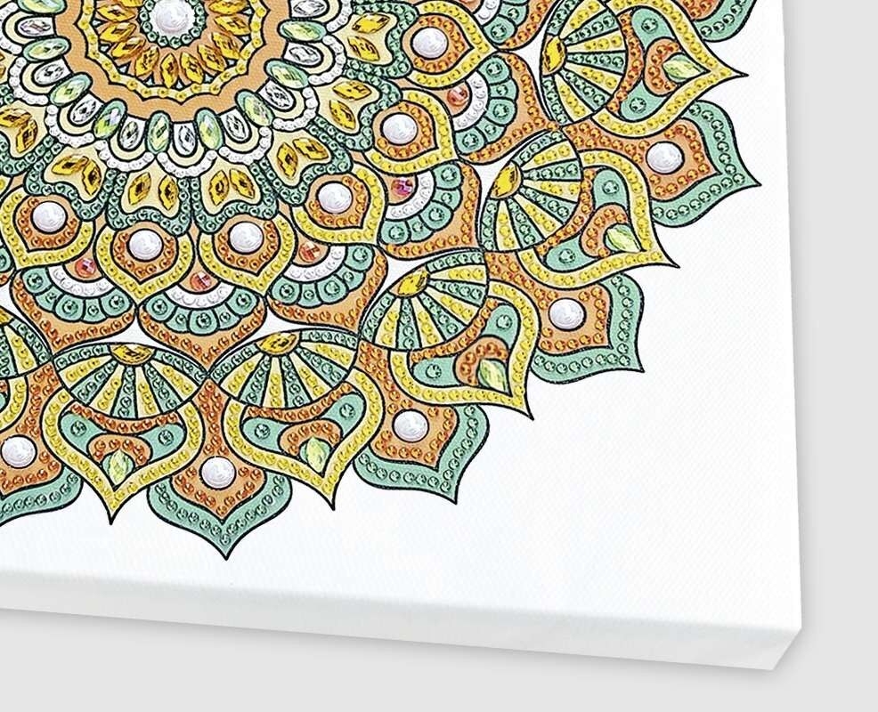 Diamanten Mandala zum Selbstgestalten in den Farben Mint, Orange und Gelb