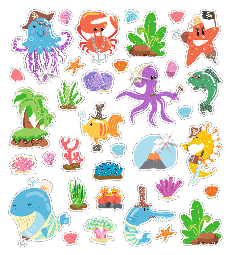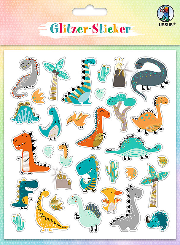 Glitzer-Sticker Fun - 4 Stickerbögen, 15x16,5 cm , selbstklebend, teilweise foleinveredelt oder beglittert