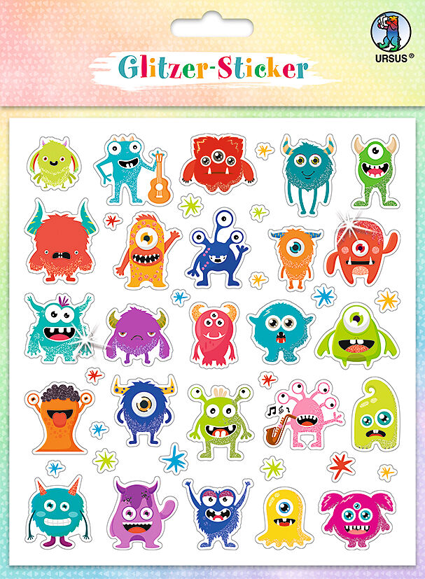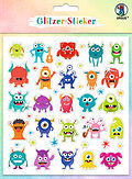 Glitzer-Sticker Fun - 4 Stickerbögen, 15x16,5 cm , selbstklebend, teilweise foleinveredelt oder beglittert