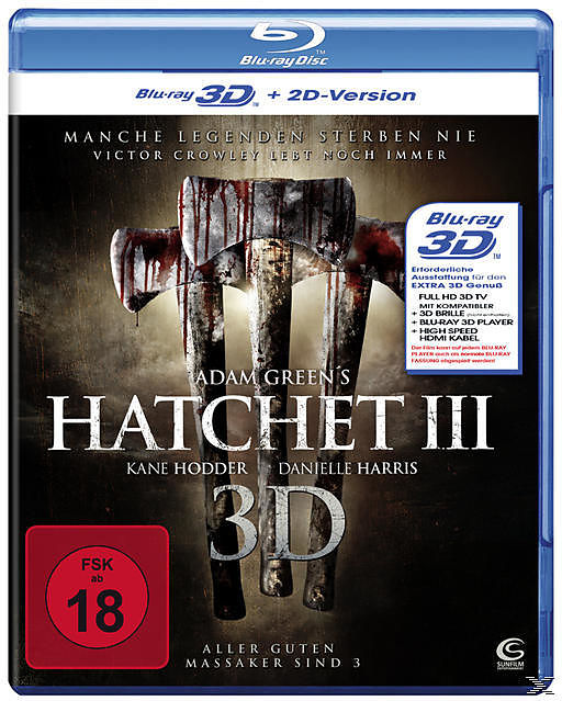 Hatchet III (Blu-ray 3D) Nachdem Marybeth (Danielle Harris) Victor Crowley (Kane Hodder) getötet hat, wird sie in eine naheliegende Polizeistation gebracht, wo der Verdacht bezüglich der grausamen Morde direkt auf sie fällt. Währenddessen werden die leblosen Ü...